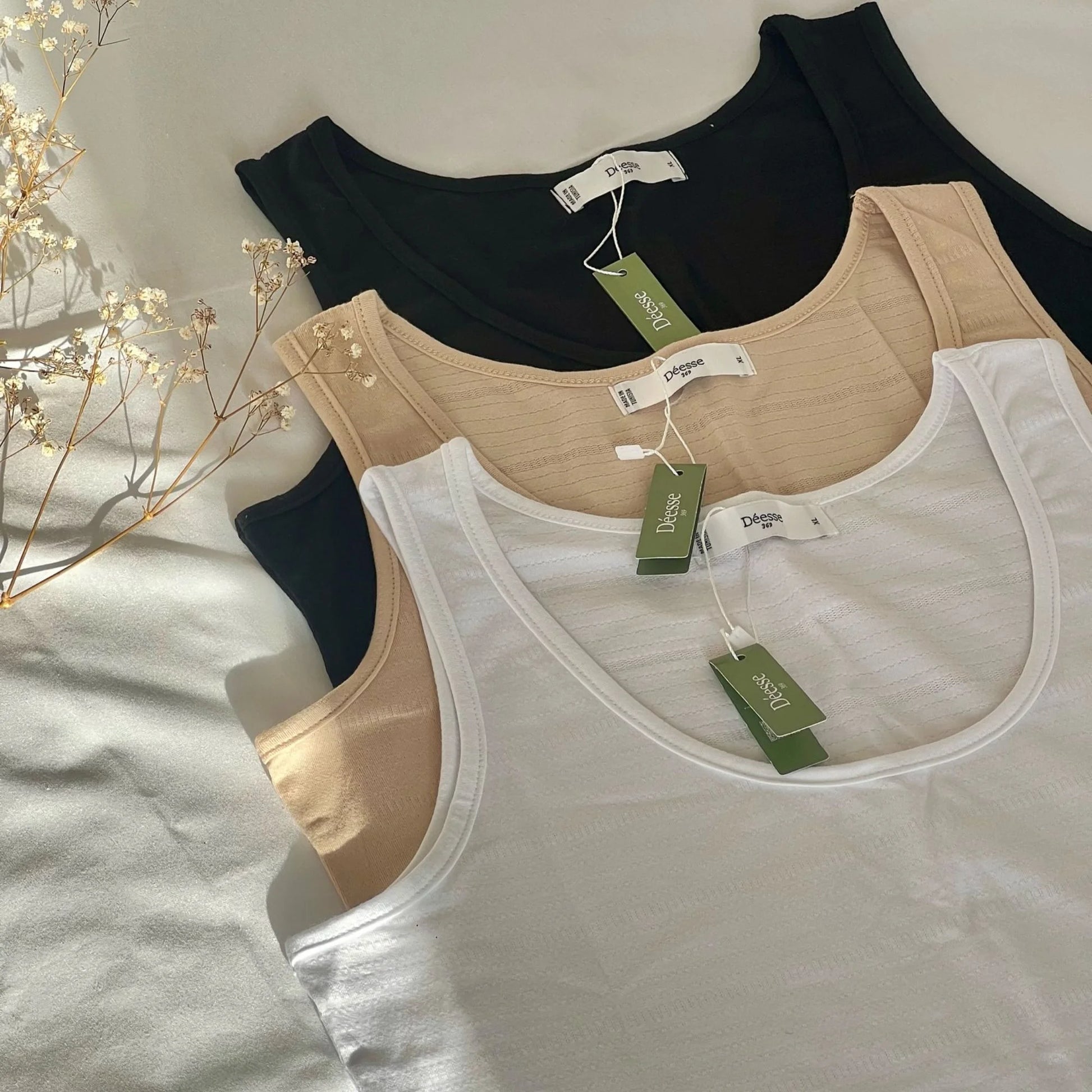 Conçus pour t’accompagner au quotidien, ces basiques allient confort et style. Leurs coupes minimalistes se portent seules ou se glissent facilement sous tes tenues. ✨